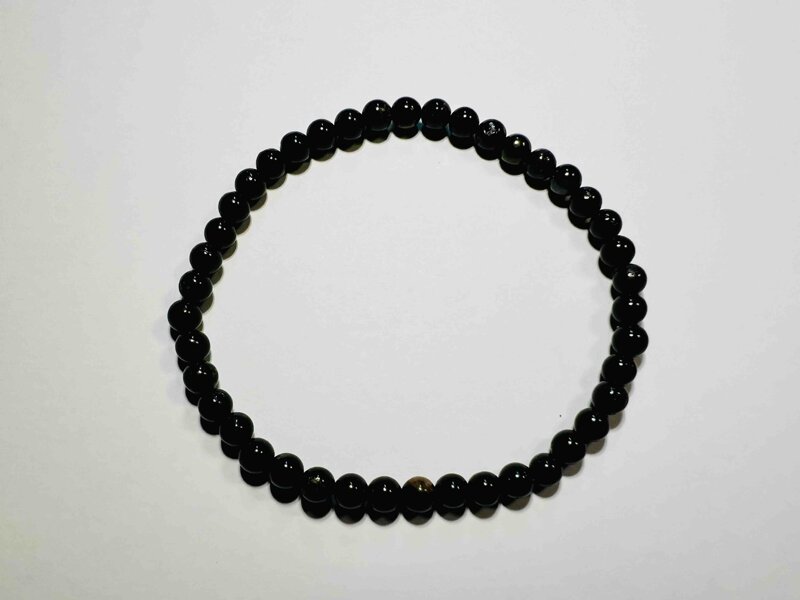 Bracciale Tormalina nera con elastico. Misura perle 4 mm peso 5 g. Neutralità. Infonde rilassatezza, riduce lo stress, protegge dalle influenze esterne, migliora il sonno. Rende obiettivi, chiari, logici e razionali. Limita gli effetti della radioattività, i dolori, gli irrigidimenti e disturbi all'udito, fa scomparire le cicatrici.