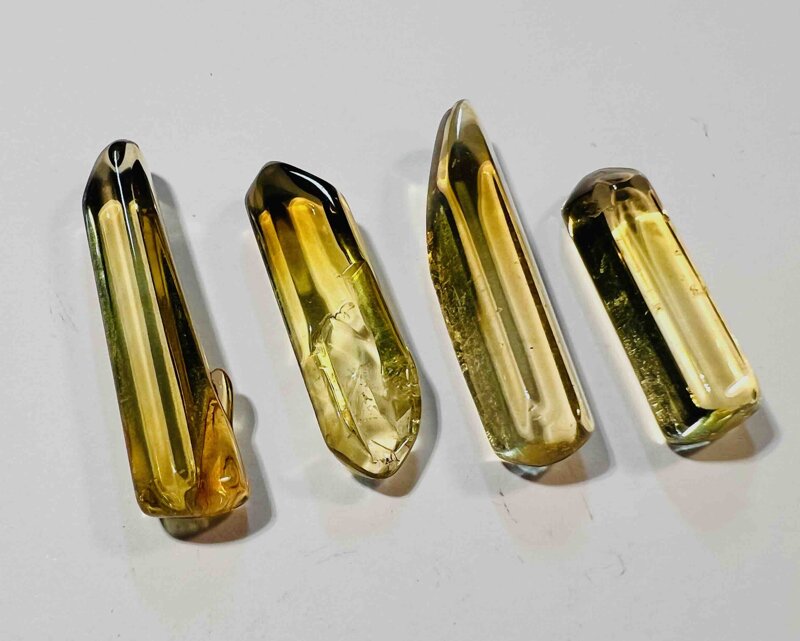 Quarzo fumè punta piccola burattata, misura tra 3 e 3,5 cm spessore 1 cm circa. Peso 4 g. circa. Prezzo riferito al singolo pezzo.