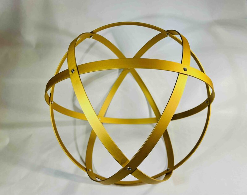 Genesa Crystal diametro 31,5 cm in alluminio satinato anodizzato colore oro, peso 300 g. profilo 1,5 cm, spessore barra 2 mm. Le viti sono in acciaio inox corte e stondate. Altezza sul lato quadrato 27 cm e sul triangolo 30,5 cm. La Genesa è realizzata a mano e le barre sono piegate con la calandra per ottenere cerchi il più perfetti possibile. Le giunture passano sempre all’interno e mai all’esterno le viti corte e stondate. Vengono spedite già assemblate con l’intreccio giusto per un’energia equilibrata. La Genesa ha una parte tonda e una parte ovale, secondo come la si guarda non è perfettamente tonda e non è un difetto di costruzione ma è la realtà. La realizzazione delle sfere viene eseguita sempre sul momento. Ecco perché ci vogliono da uno a due giorni di tempo in base anche agli ordini ricevuti. Nella confezione per ogni sfera acquistata è presente il manuale con tutte le istruzioni per l’utilizzo e la procedura per l’attivazione e programmazione della Genesa. Più una procedura di purificazione e protezione del proprio campo aurico, casa e famiglia da qualsiasi energia negativa. Più il cubo di Metatron su cui appoggiare la sfera, due Yantra per la protezione della casa e prosperità e il Fiore della Vita stampati su cartoncino e plastificati. Con ogni sfera in omaggio sempre un cristallo burattato o grezzo a sorpresa.